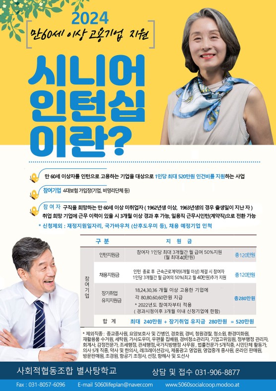 2024년 기업 지원금 시니어인턴십 사업 참여 기업 모집 안내드립니다.
