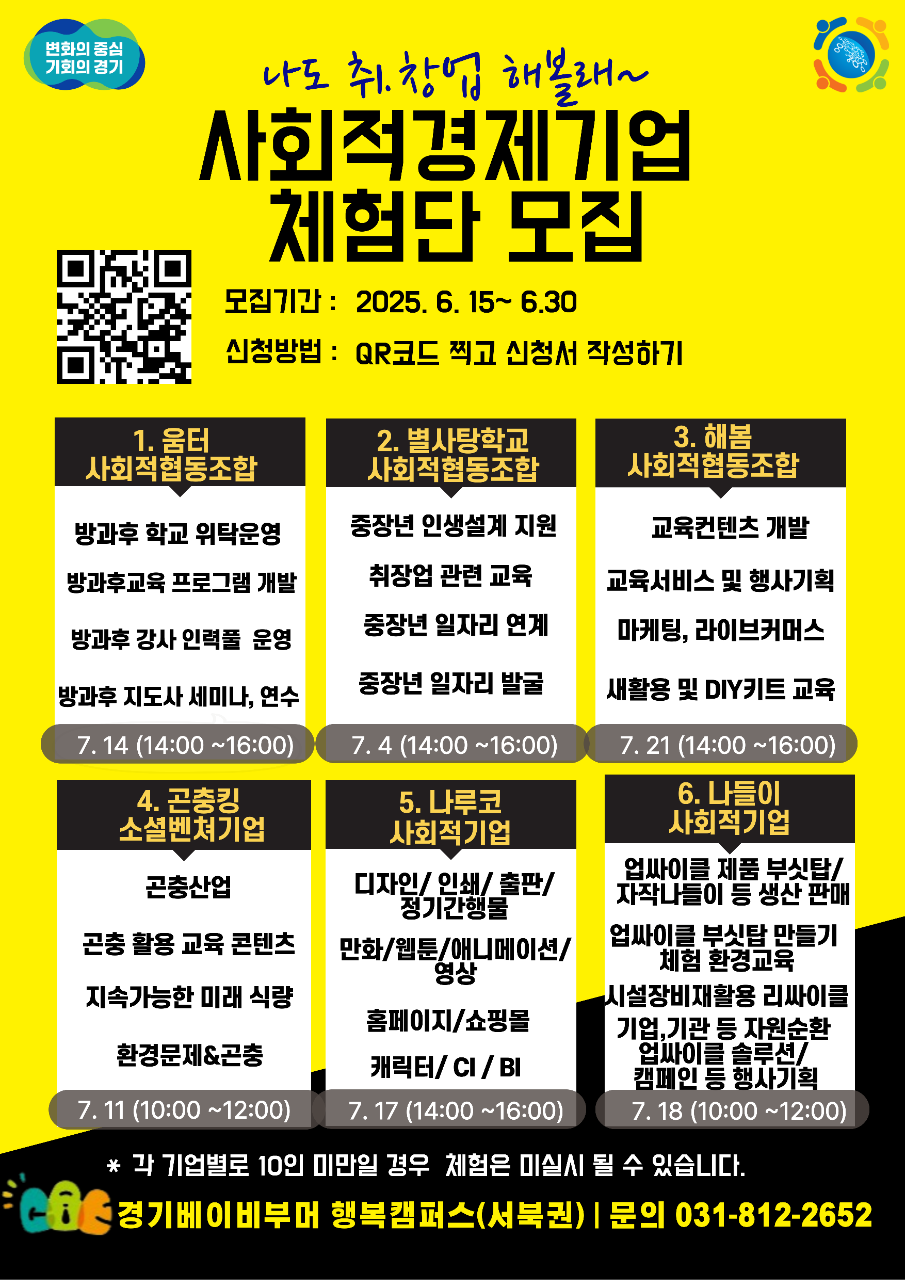 ✅ 다양한 사회적경제기업의 실무 체험 기회!